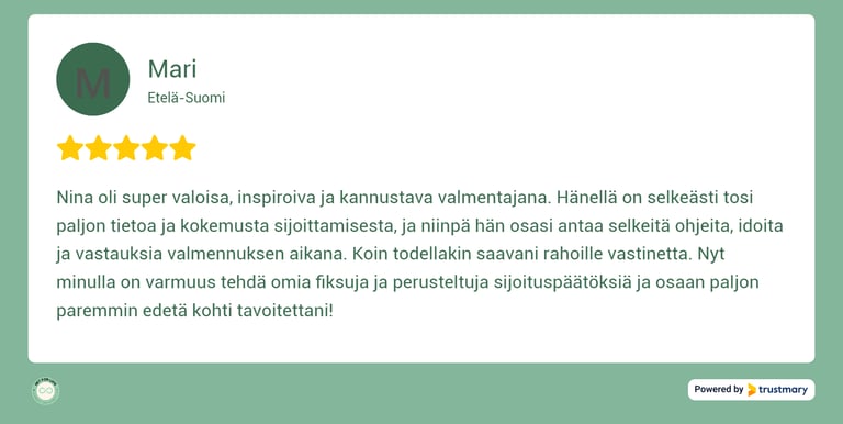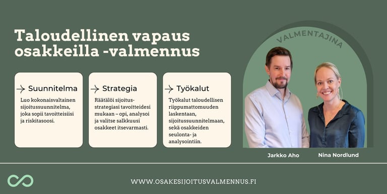 Pohditko, voisiko joku meidän valmennuksistamme sopia sinulle? Ota rohkeasti yhteyttä ja katsotaan yhdessä, voimmeko auttaa sinua eteenpäin sijoittamisessa tai yrittäjyydessä.