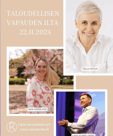 Ilta tarjoaa käytännön vinkkejä sekä inspiroivaa sisältöä matkallesi kohti taloudellista riippumattomuutta. Tervetuloa mukaan – tule inspiroitumaan ja oppimaan lisää taloudellisen vapauden mahdollisuuksista!