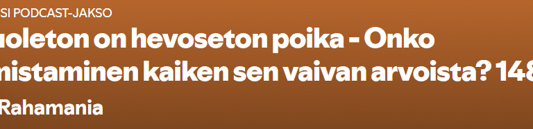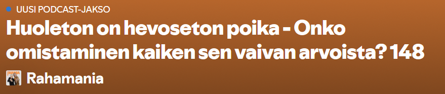 Omistamisen alkua sävyttää usein innostus ja ylpeys. Uuden auton tuoksu, oman kodin avaimet kädessä tai sijoitusasunnon ensimmäinen vuokralainen tuovat mukanaan onnistumisen tunteen. Omistaminen voi kuitenkin nopeasti muuttua myös rasitteeksi. Esimerkiksi uuden auton kohdalla pienet naarmut, renkaiden vaihtotarpeet ja vakuutusmaksut muistuttavat siitä, että omistaminen ei ole pelkkää juhlaa. Vastuuta on enemmän kuin ehkä aluksi ajattelitkaan.